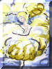 Colors: deep yellow green, orange, dark yellow, pink accents