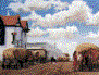 the road turned off. Right there was a number of barns and out buildings.