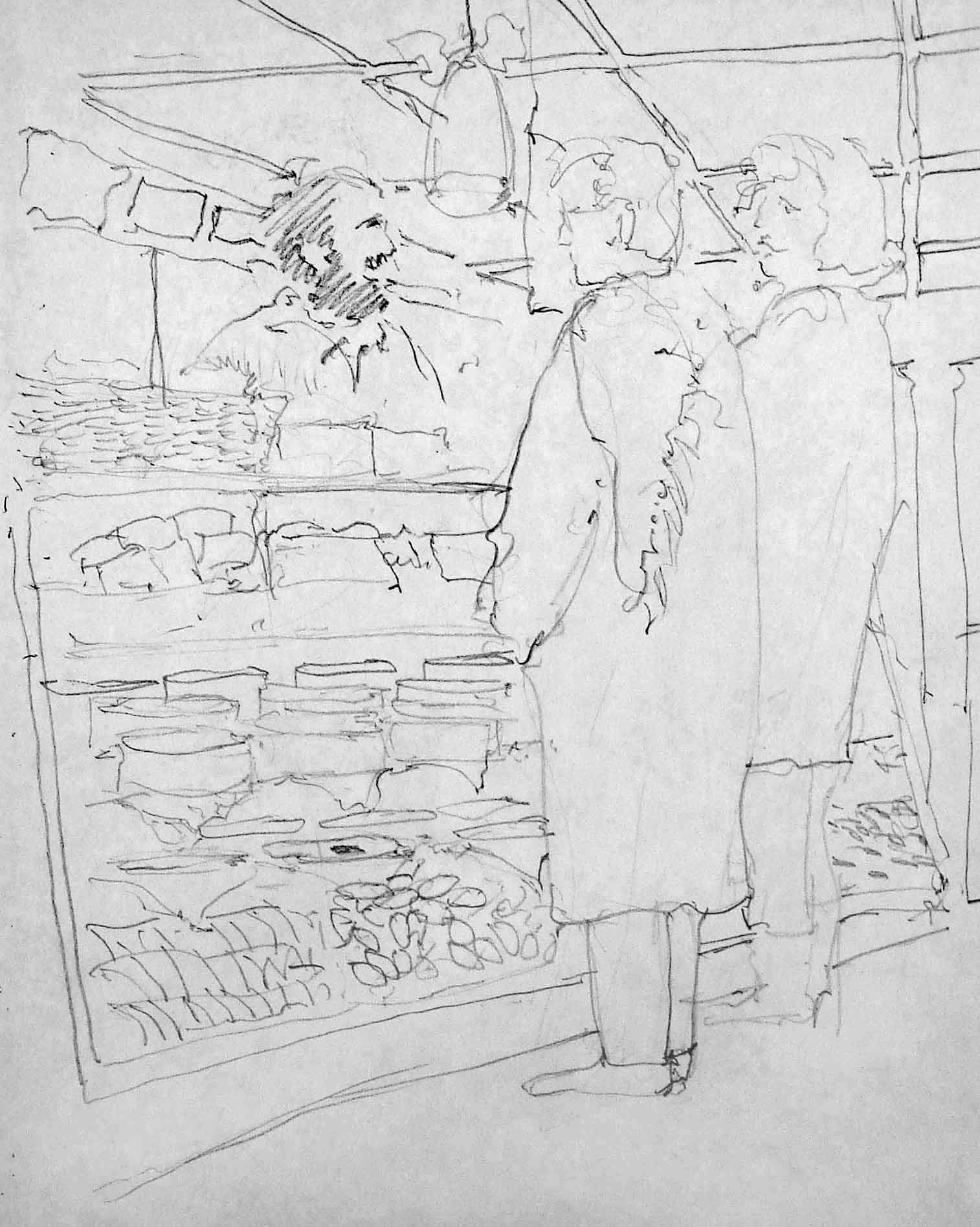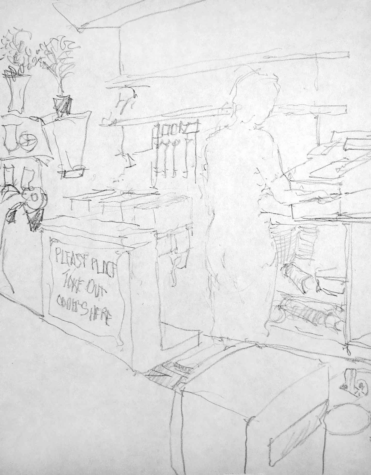 Sketched from life from the outside looking in the famous Murry's Cheese