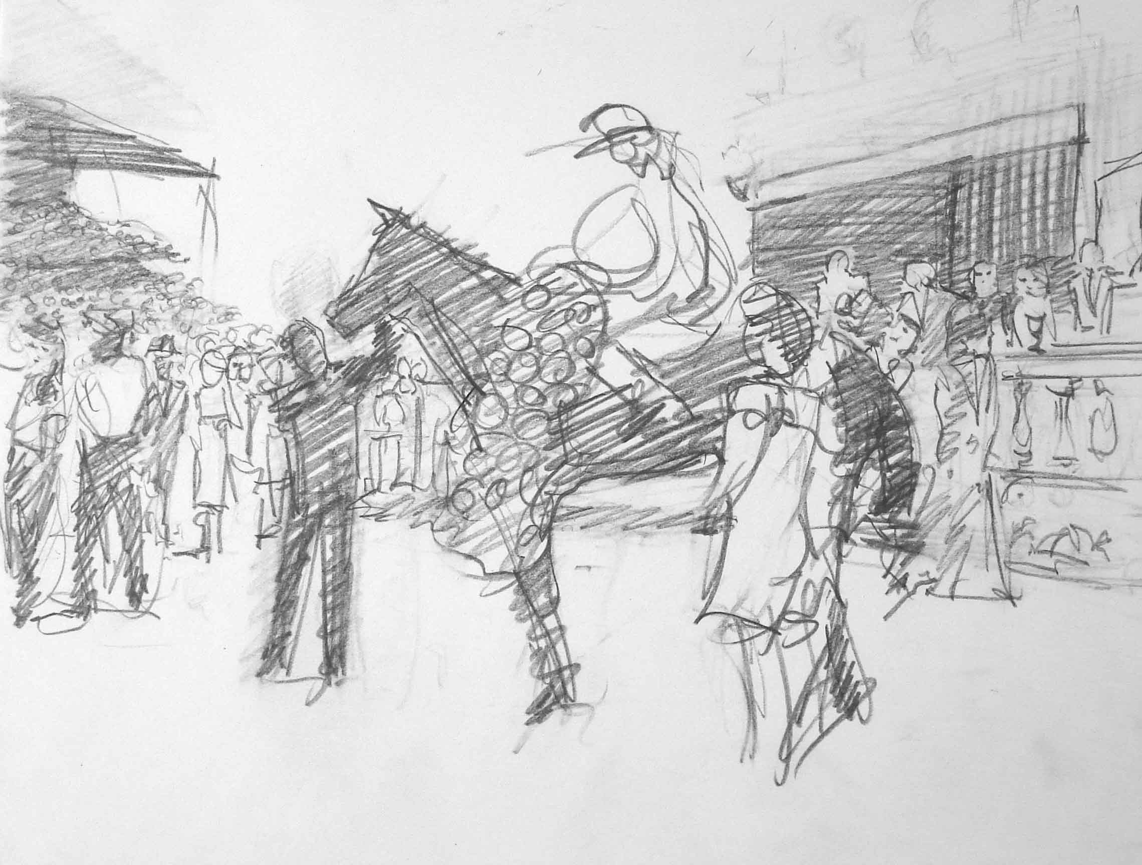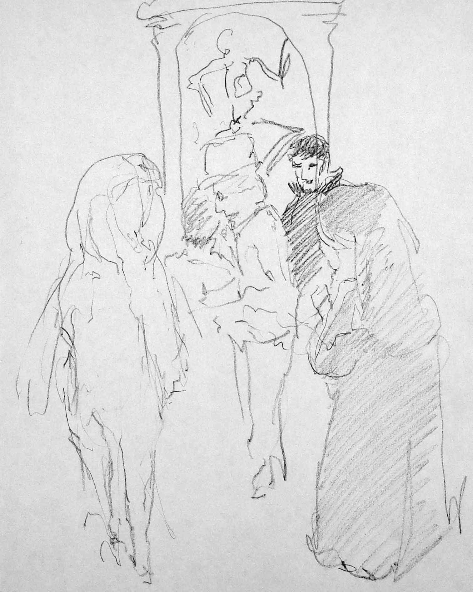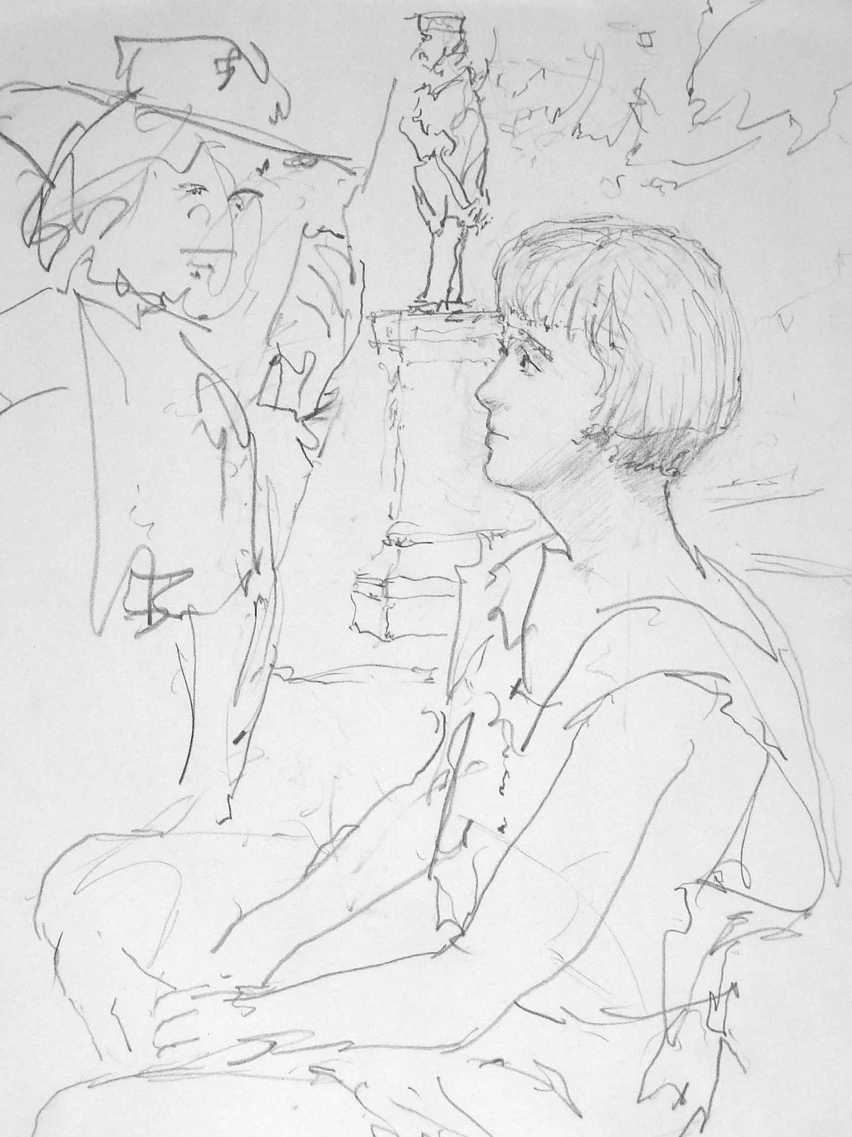 Sketched from life in Washington Square Park. Tom would do the sketch