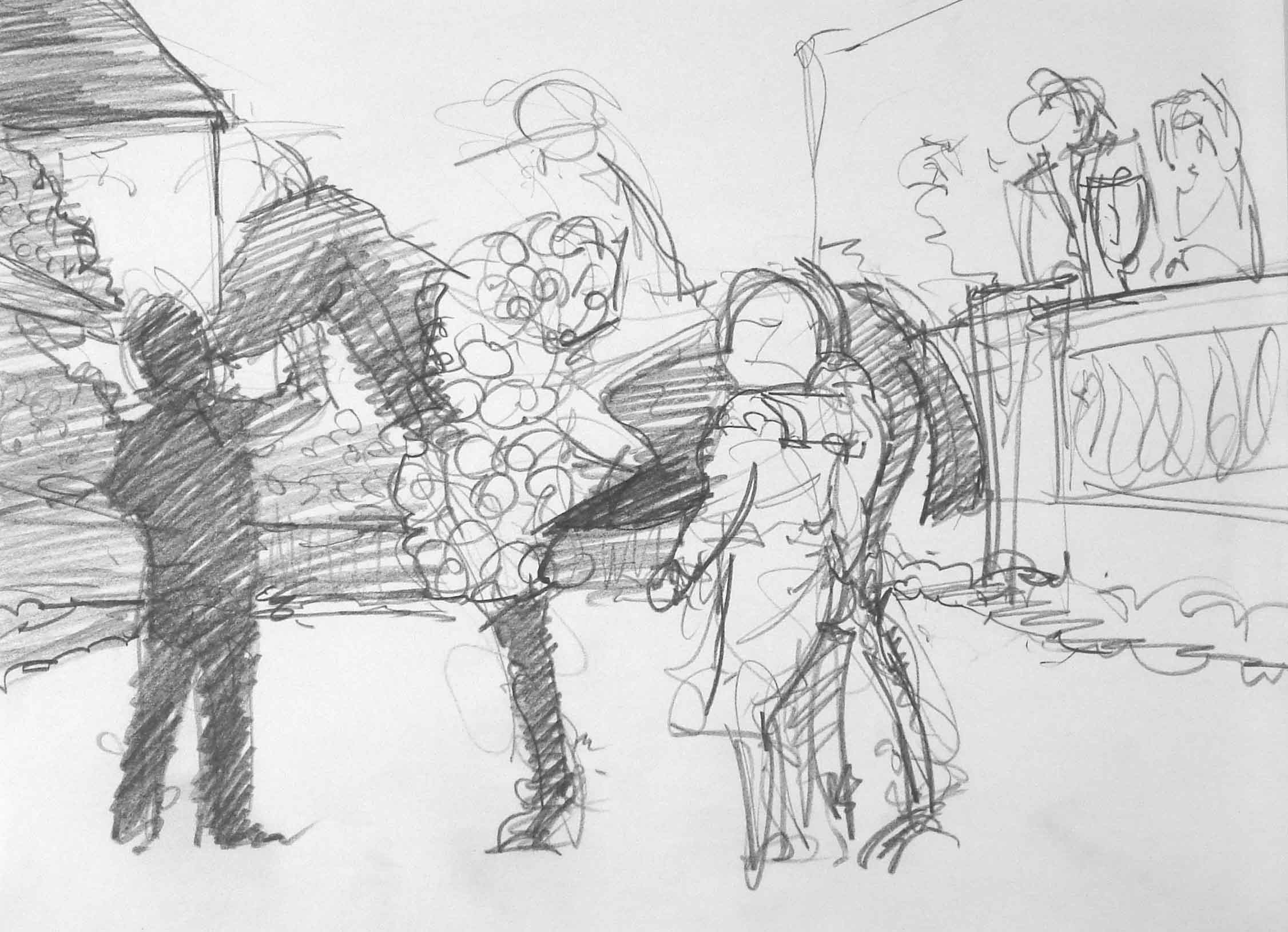 Sketched from life. Tom spent his summer painting the same fountain everyday