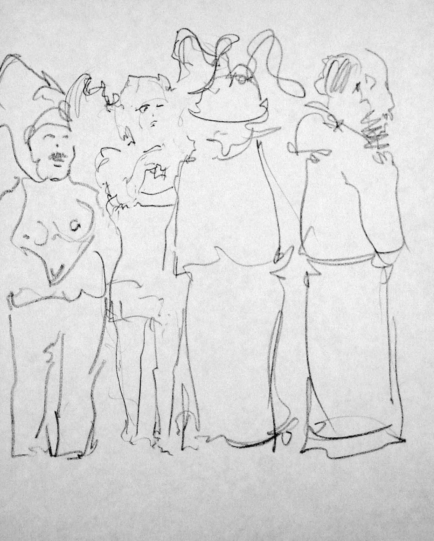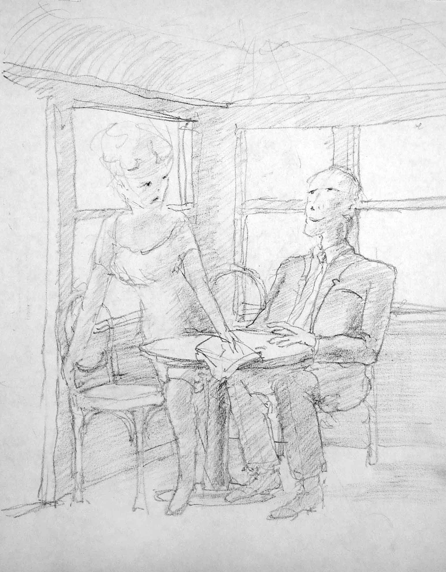 of drawings of a beautiful woman and a dirty old man in Nantucket.