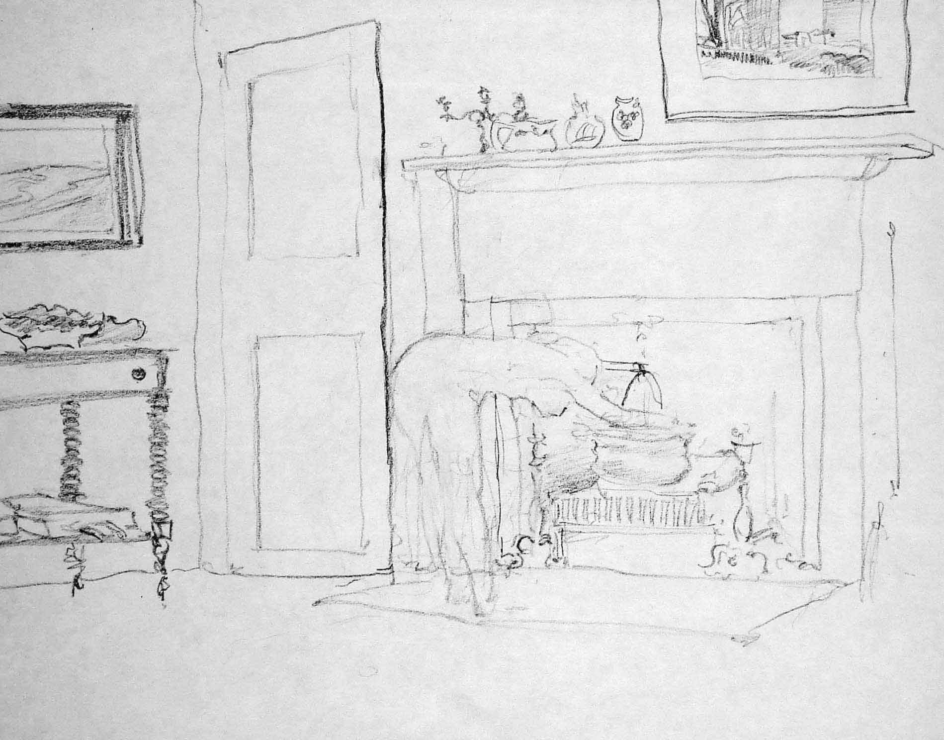 Tom sketched his good friend Paul Longnecker's guest room fireplace.