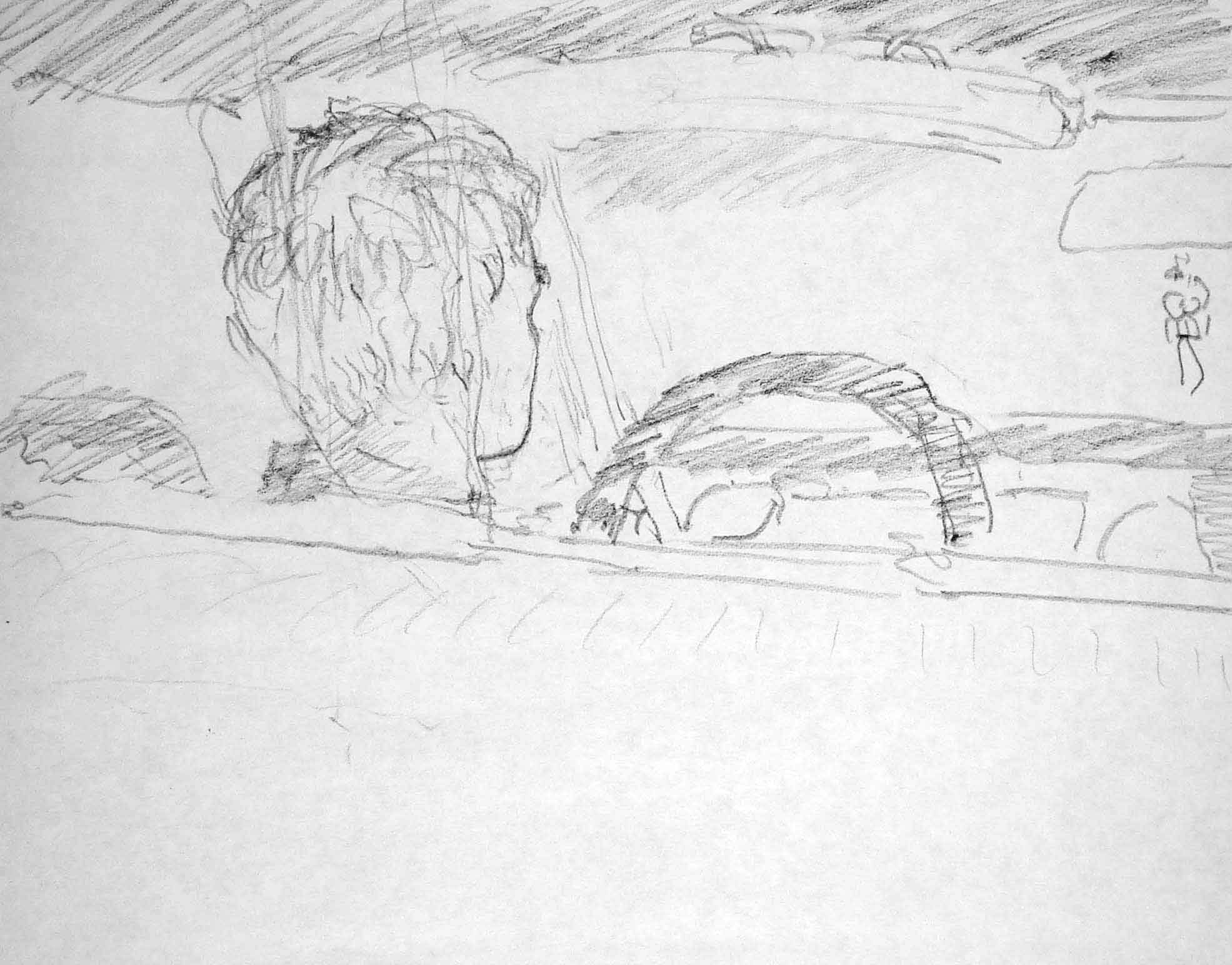 done from life. Tom was working on a farm scene for his friend David Burggerman