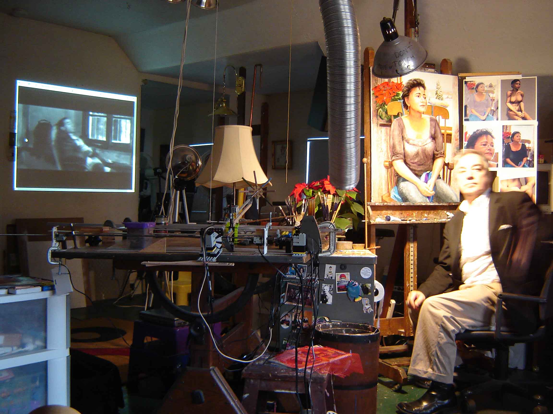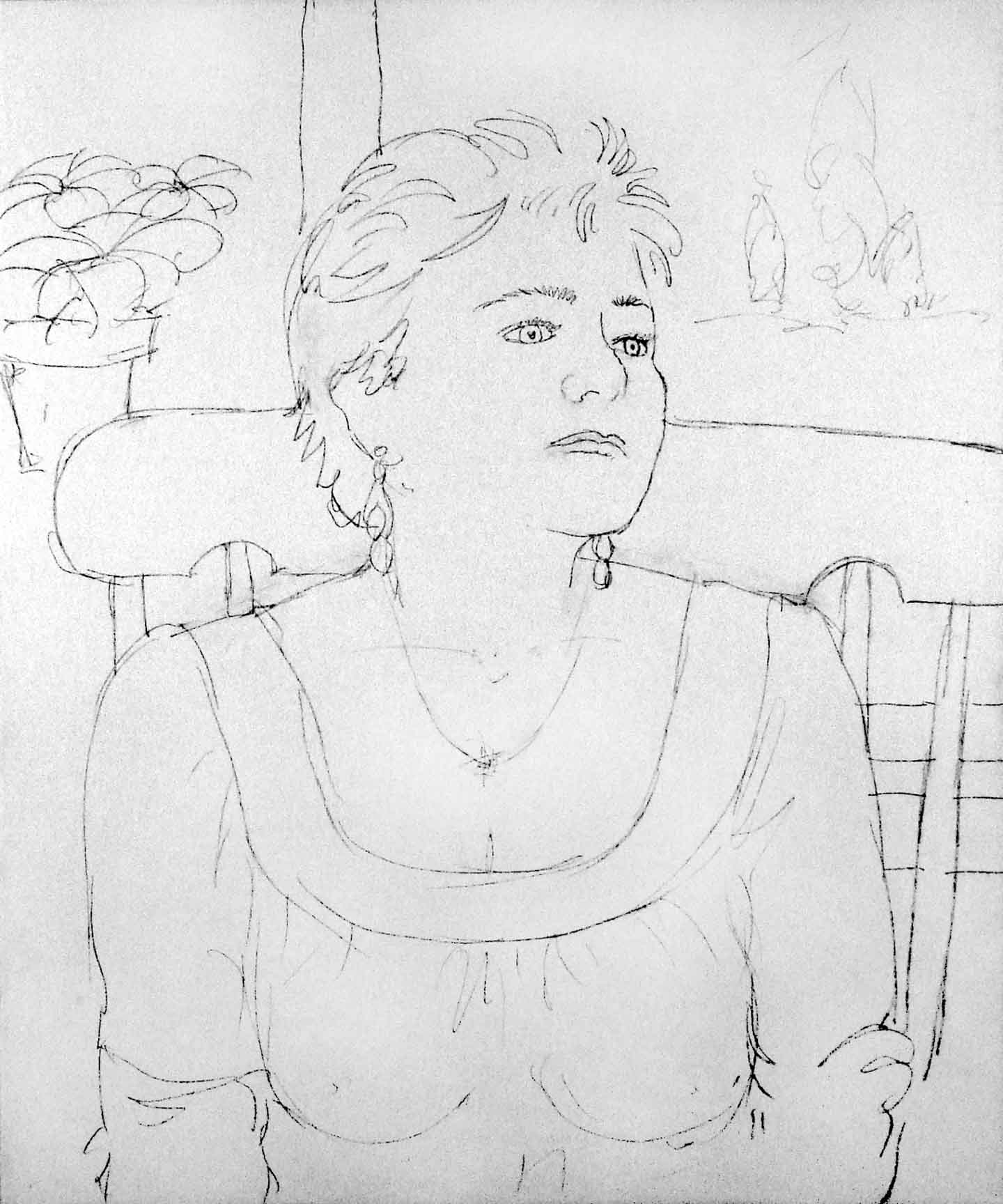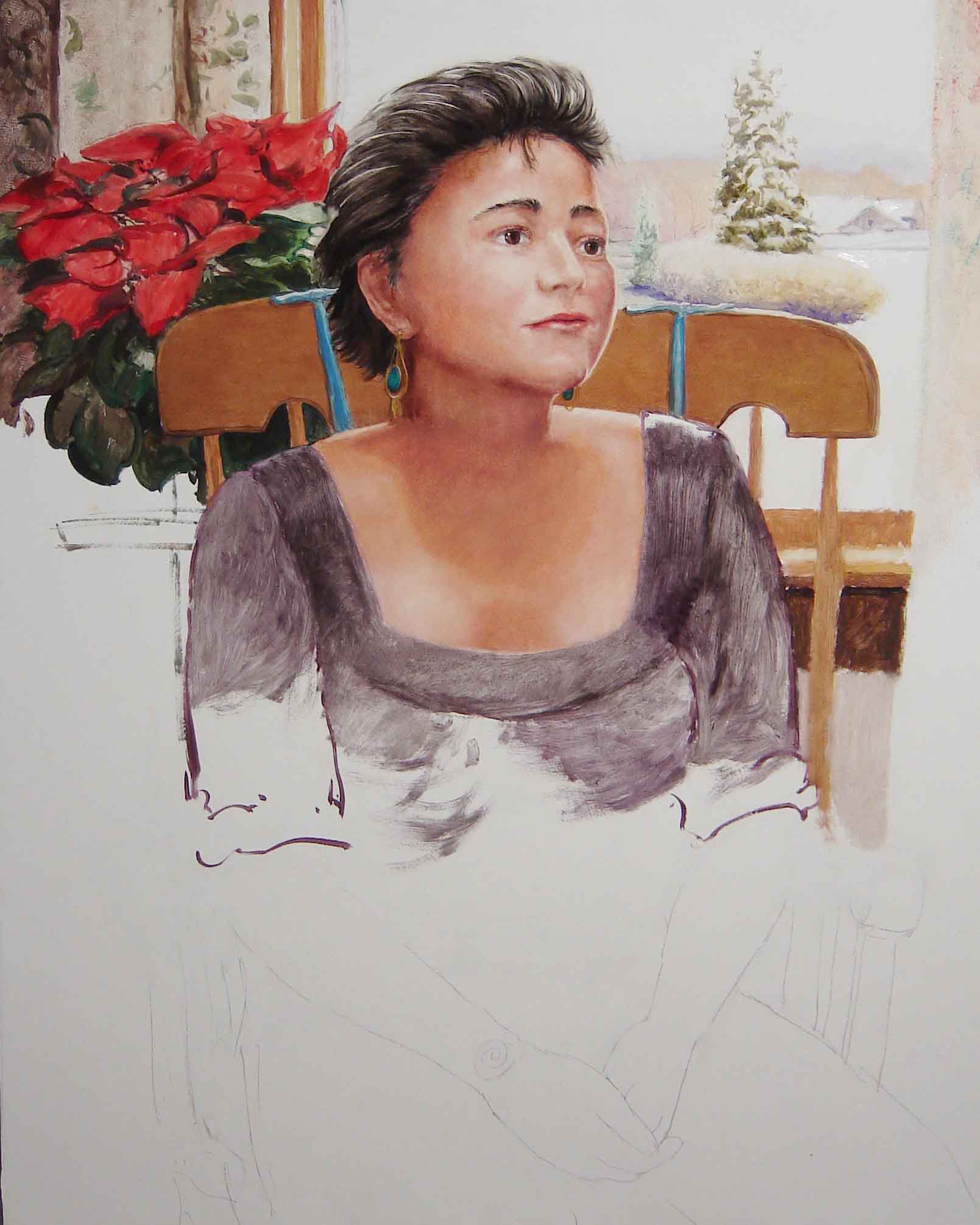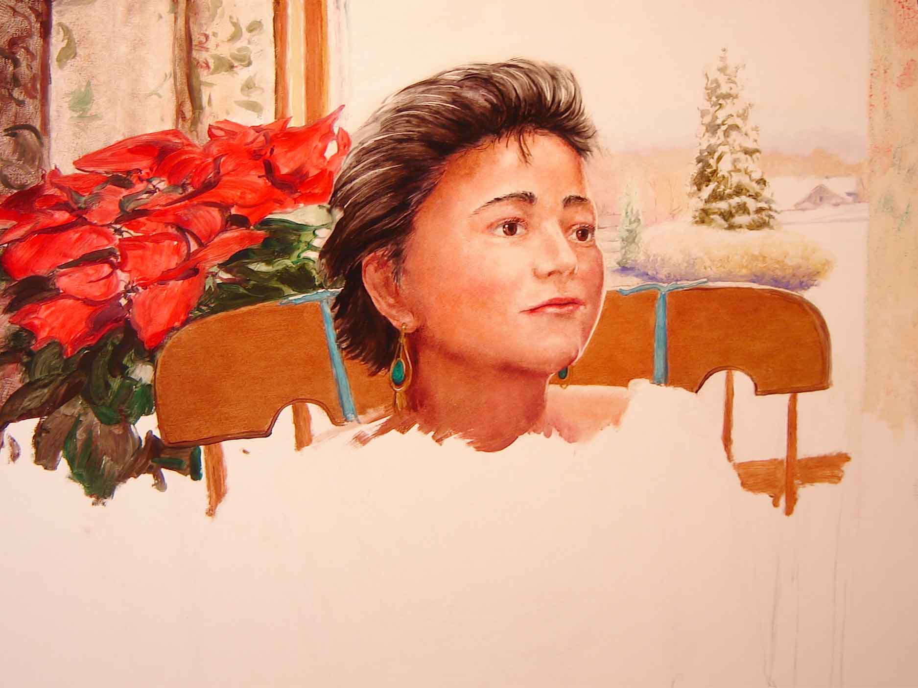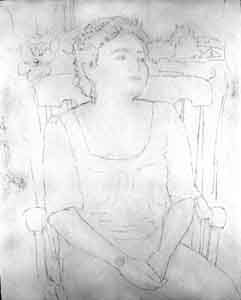 edges. Then he projected it onto the prepared canvas with pencil. After