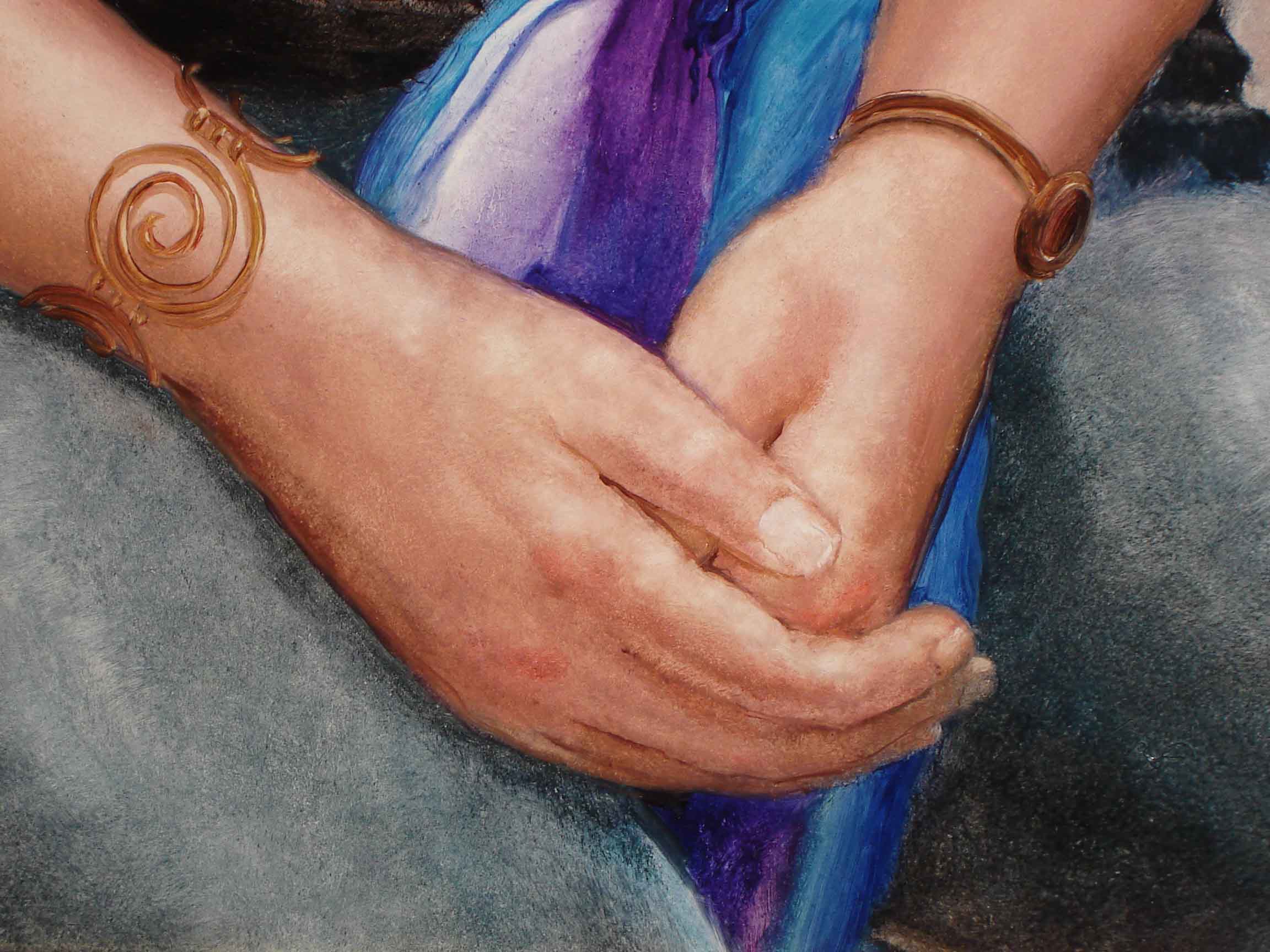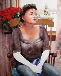 cut off. The artist also uses rubber tipped brushes to remove paint revealing