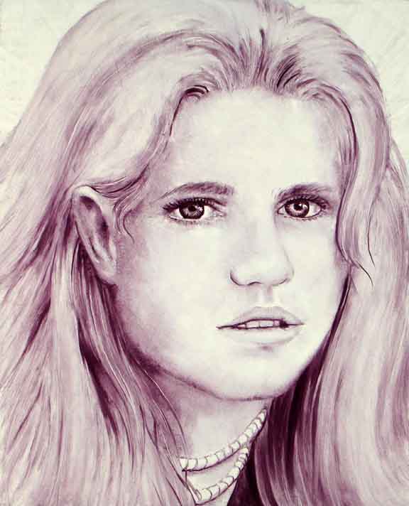 Brooke Sheilds, 8" x 10", oil on mylar, painted in reverse color